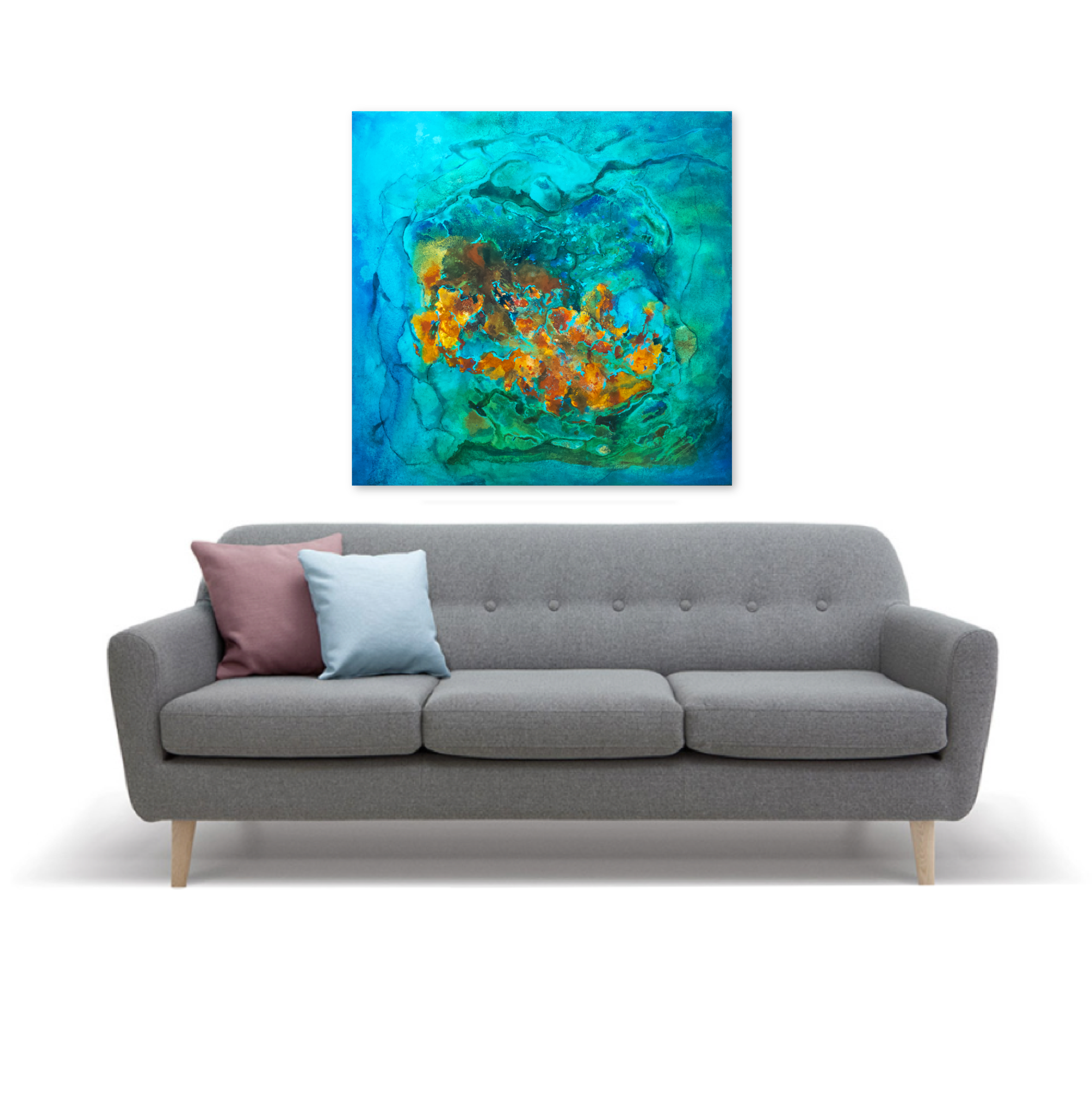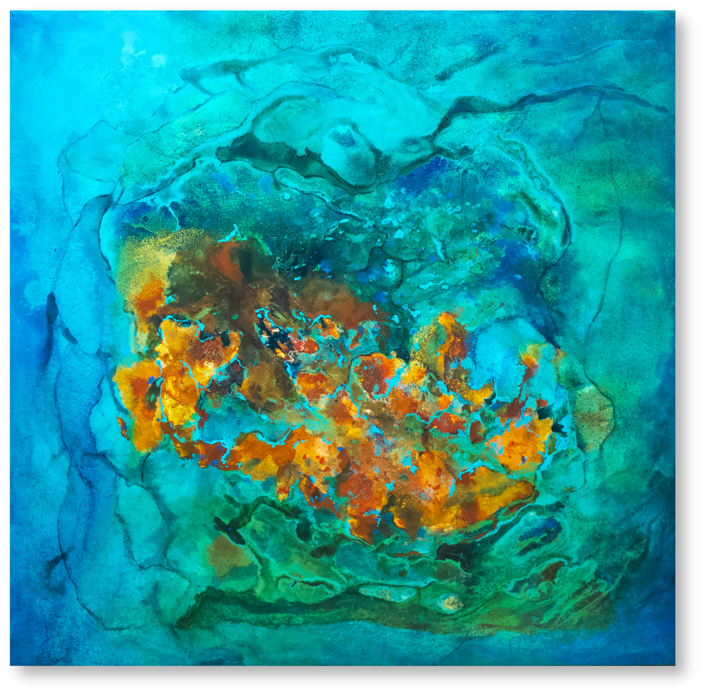 This unique acrylic work, painted by Mary Made in Brussels in 2019, is part of the Alchemy serie and depicts jewels from the aquatic world.